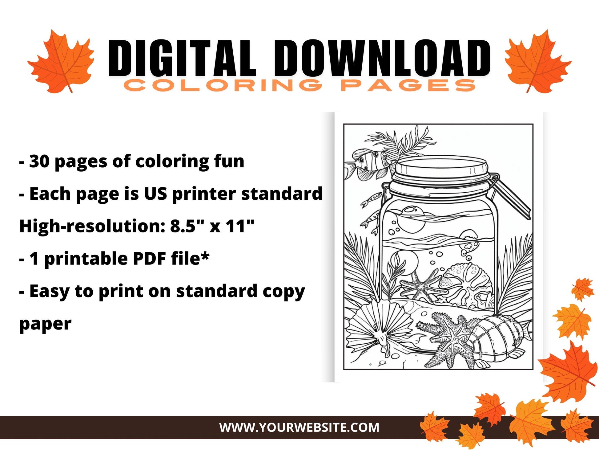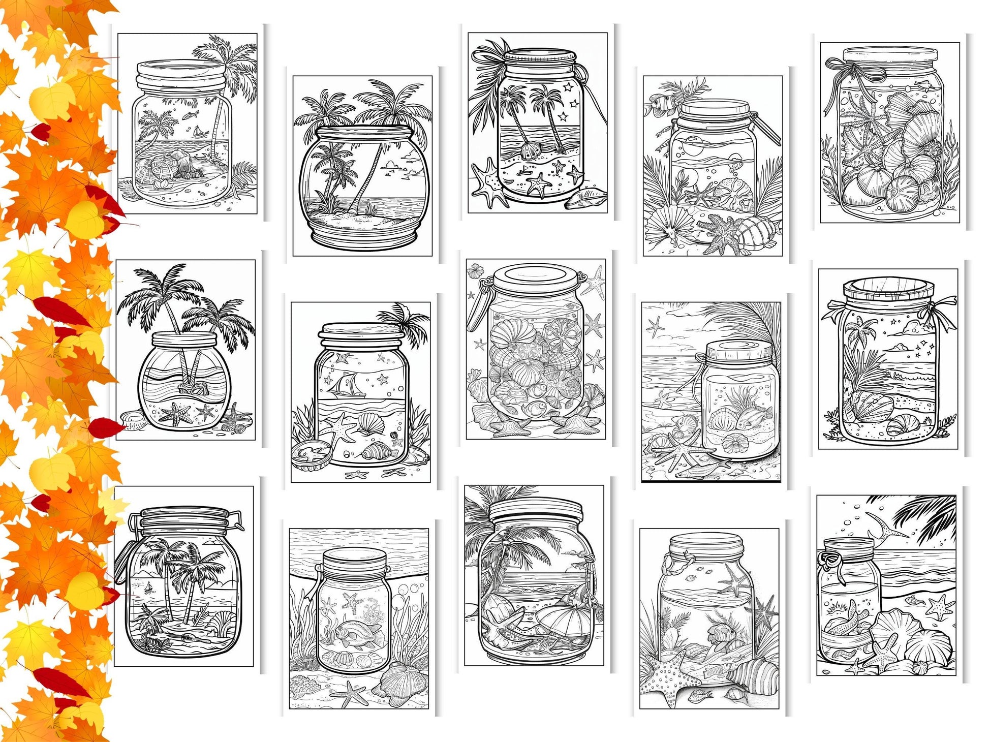 Beach in a Jar Coloring Book: 30 Printable Relaxation Pages (Digital Download)