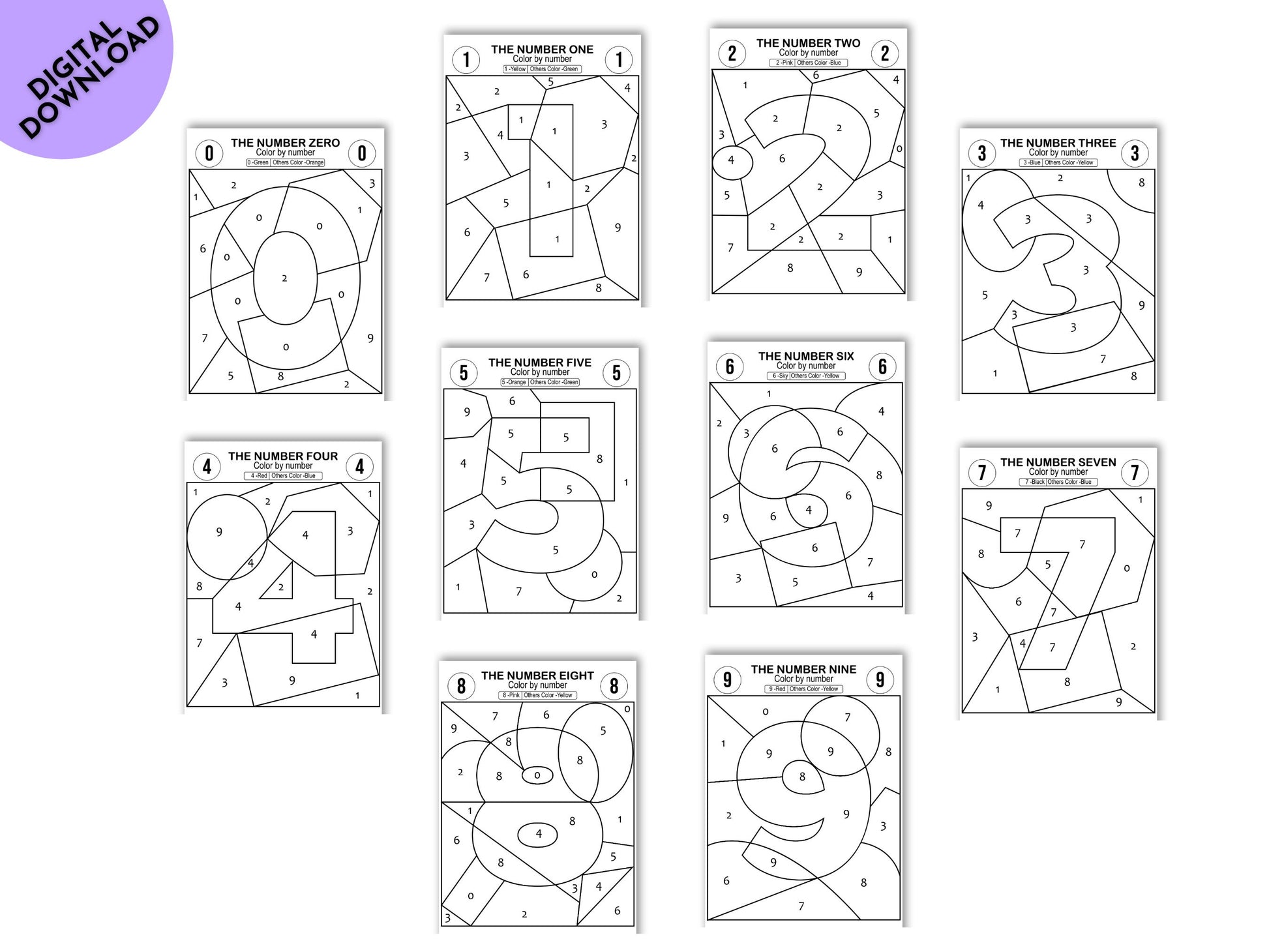 Color By Number 0-9 Activity: Pre-K Coloring Pages (Digital Download)