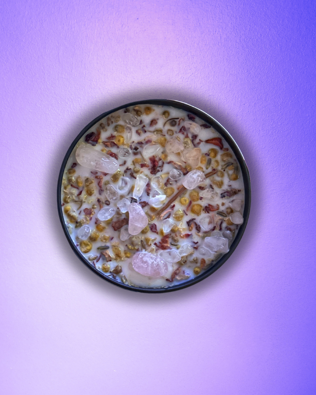 Mercury who? This candle calms the cosmic chaos with soothing herbs, magick oil, and a crystal topping that keeps you unbothered. Burns 111, 88, or 69 hours of retrograde armor.